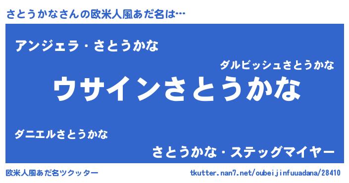 | 男性向けラノベタイトル風あだ名 | 『さとうかなの嫁は女の子じゃないと思った?』 |