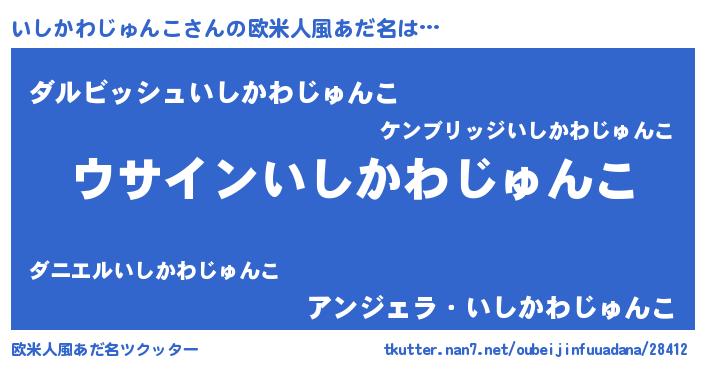 | 男性向けラノベタイトル風あだ名 | 『ダンジョンにいしかわじゅんこを求めるのは間違っているだろうか』 |