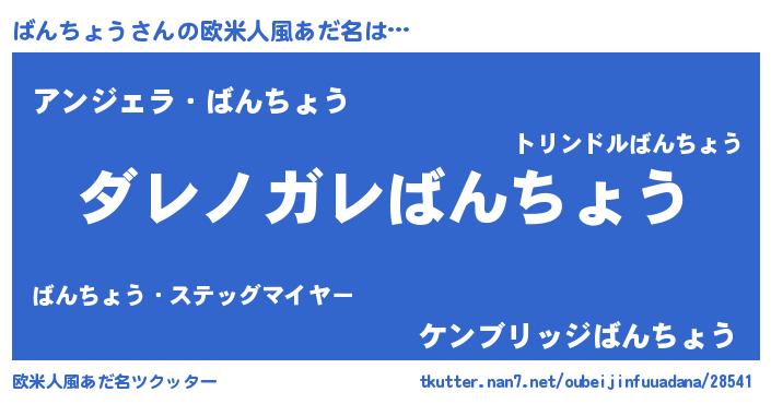 | 男性向けラノベタイトル風あだ名 | 『魔弾の王とばんちょう』 |