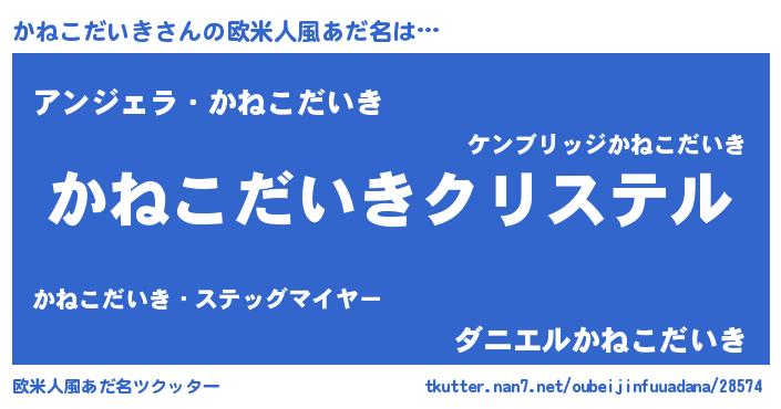 | 女子向けラノベタイトル風あだ名 | 『かねこだいきの雑貨屋さん』 |