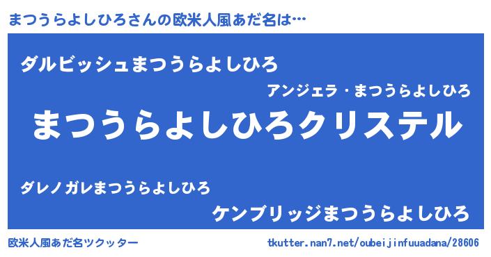 | 女子向けラノベタイトル風あだ名 | 『まつうらよしひろの婚約者』 |