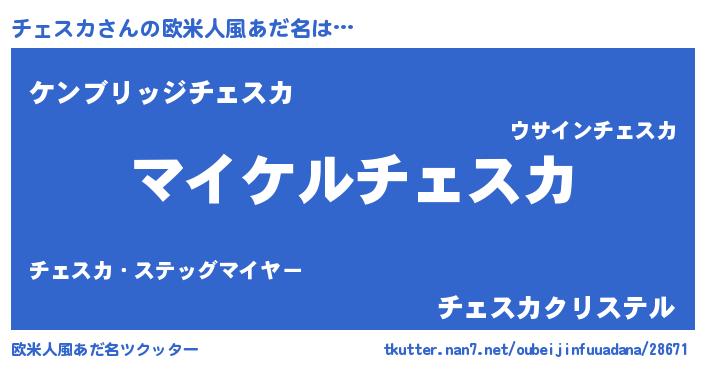 | 男性向けラノベタイトル風あだ名 | 『チェスカアートオンライン』 |