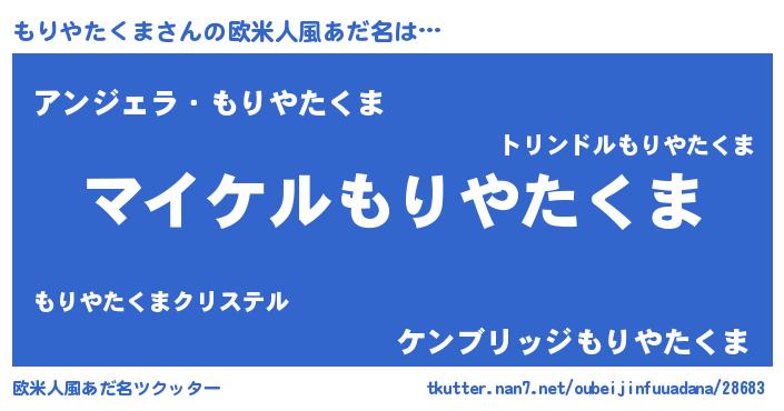 | 胡散臭い通販商品みたいなあだ名 | 『億万長者になれるブレスレット…その名も「もりやたくま」』 |