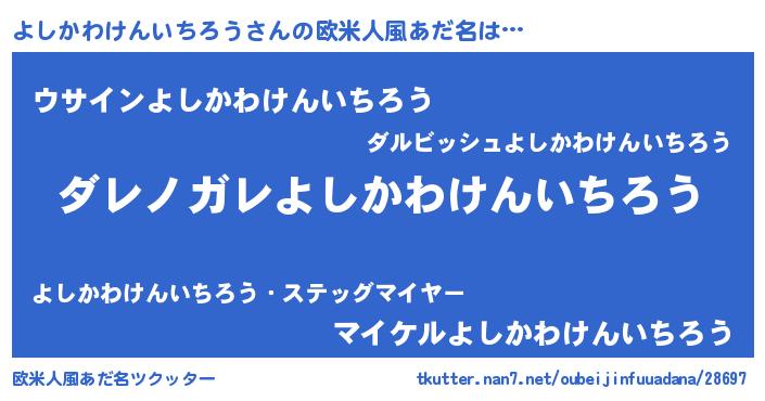 | 男性向けラノベタイトル風あだ名 | 『この素晴らしい世界によしかわけんいちろうを!』 |