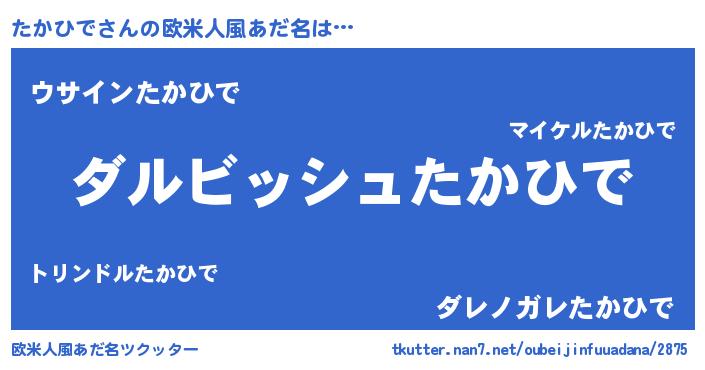 | 女子向けラノベタイトル風あだ名 | 『異世界で失敗しない100のたかひで』 |