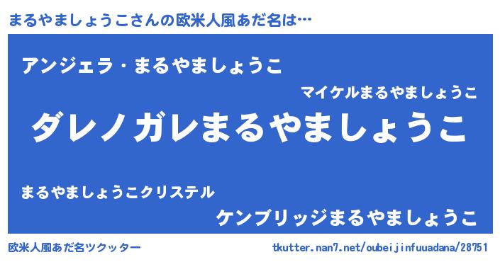 | 男性向けラノベタイトル風あだ名 | 『魔弾の王とまるやましょうこ』 |