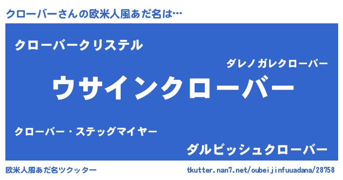 | 男性向けラノベタイトル風あだ名 | 『クローバーの嫁は女の子じゃないと思った?』 |
