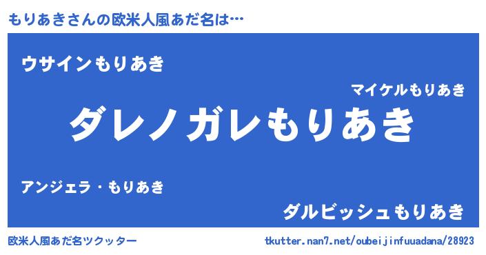 | 男性向けラノベタイトル風あだ名 | 『この素晴らしい世界にもりあきを!』 |