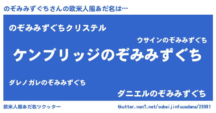 | 意味不明あだ名 | 『自称のぞみみずぐち』 |