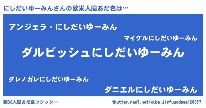 | ヘコむあだ名 | 『にしだいゆーみん(震え声)』『にし太郎』 |
