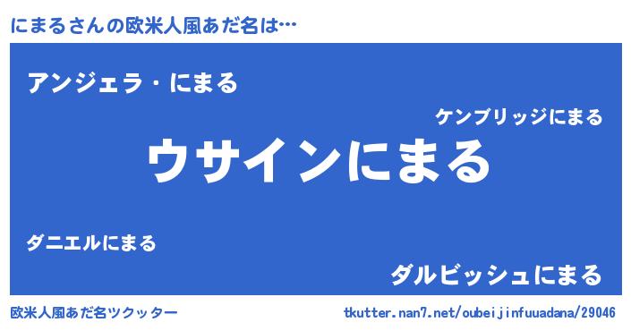 | 女子向けラノベタイトル風あだ名 | 『にまるの卵を拾いまして』 |