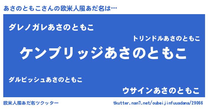 | 男性向けラノベタイトル風あだ名 | 『Re:あさのともこから始める異世界生活』 |