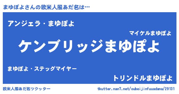 | 男性向けラノベタイトル風あだ名 | 『Re:まゆぽよから始める異世界生活』 |