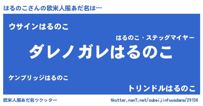| 意味不明あだ名 | 『住所不定無職はるのこ(86歳)』 |