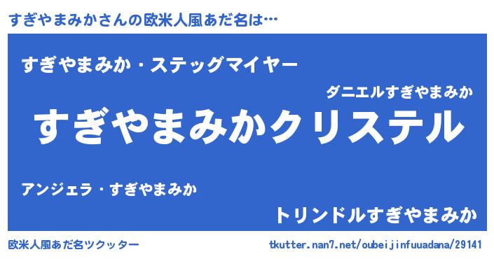 | 男性向けラノベタイトル風あだ名 | 『やはりすぎやまみかの青春ラブコメはまちがっている 』 |