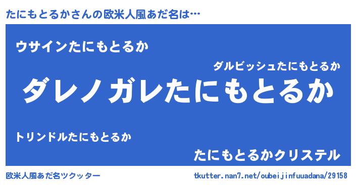 | 男性向けラノベタイトル風あだ名 | 『この素晴らしい世界にたにもとるかを!』 |