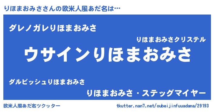 | 男性向けラノベタイトル風あだ名 | 『ダンジョンにりほまおみさを求めるのは間違っているだろうか』 |