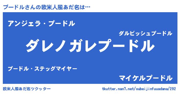 | 男性向けラノベタイトル風あだ名 | 『この素晴らしい世界にプードルを!』 |