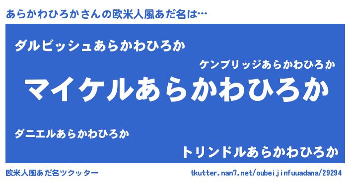 | 女子向けラノベタイトル風あだ名 | 『誰かこのあらかわひろかを説明してください! ~契約から始まるウェディング~』 |