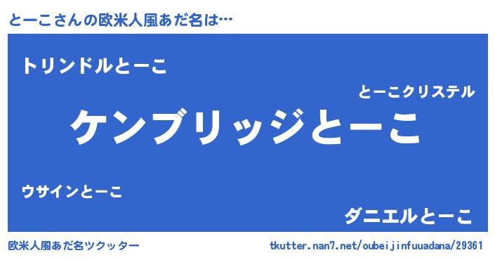 | 男性向けラノベタイトル風あだ名 | 『Re:とーこから始める異世界生活』 |