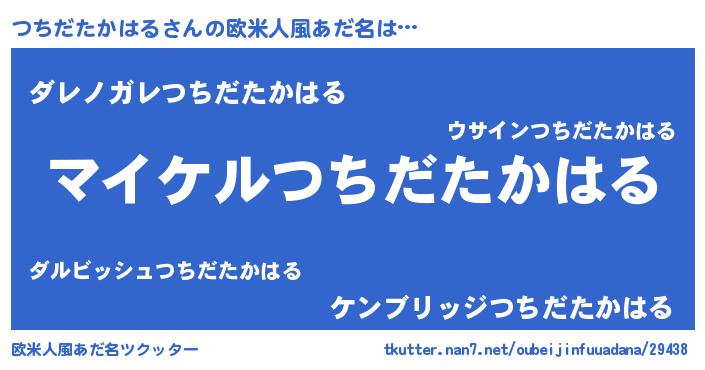 | 男性向けラノベタイトル風あだ名 | 『つちだたかはるの憂鬱』 |