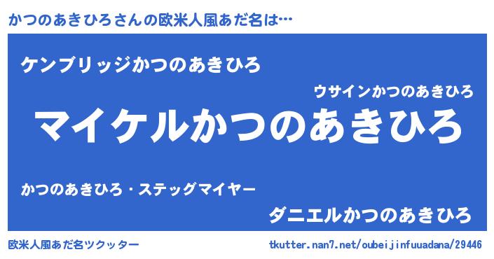 | 女子向けラノベタイトル風あだ名 | 『誰かこのかつのあきひろを説明してください! ~契約から始まるウェディング~』 |