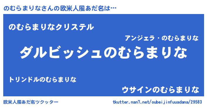 | 女子向けラノベタイトル風あだ名 | 『のむらまりなの契約王妃』 |