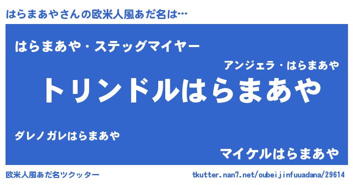 | 男性向けラノベタイトル風あだ名 | 『ハラマアヤスレイヤー』 |