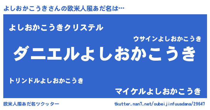 女子向けラノベタイトル風あだ名 | 『よしおかこうき恋絵巻』 |