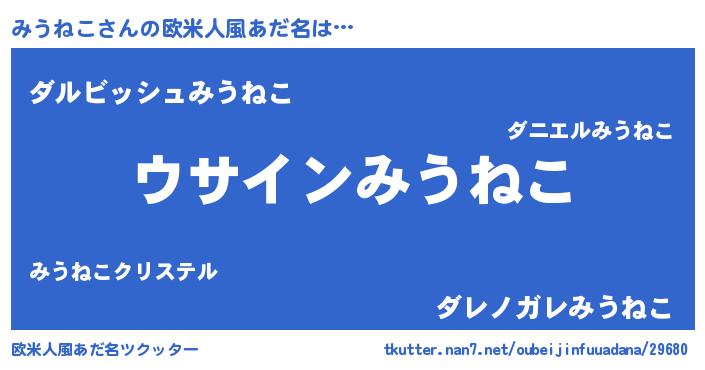 | 女子向けラノベタイトル風あだ名 | 『みうねこは平凡を望む』 |