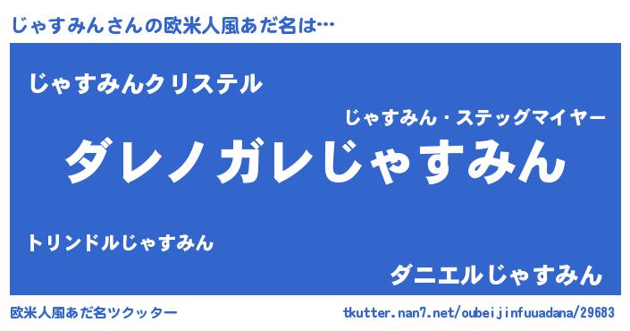 | 意味不明あだ名 | 『住所不定無職じゃすみん(12歳)』 |