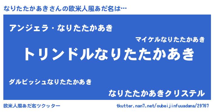 | 男性向けラノベタイトル風あだ名 | 『なりたたかあき~年齢イコール彼女いない歴の魔法使い~』 |