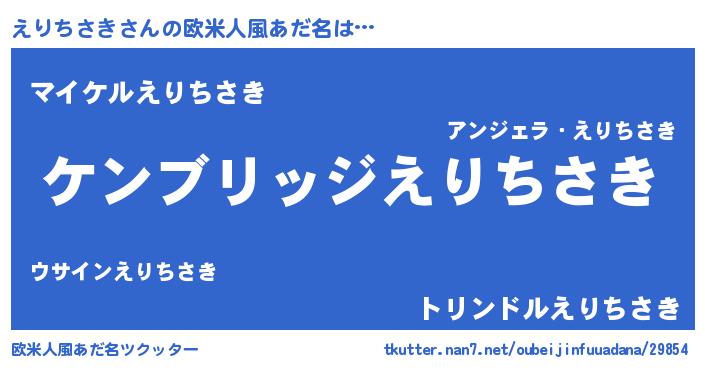 | 男性向けラノベタイトル風あだ名 | 『Re:えりちさきから始める異世界生活』 |