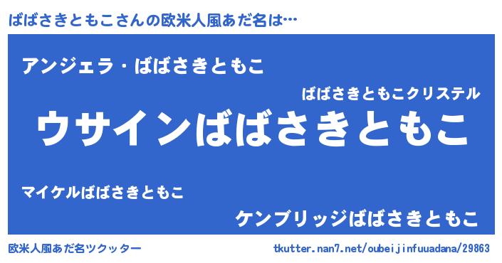 | ポケモン風あだ名 | 『ヒババサキトモコ』『ババゴンZ』 |