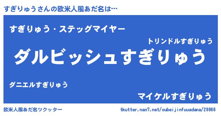 | 女子向けラノベタイトル風あだ名 | 『異世界でカフェすぎりゅうを開店しました。』 |