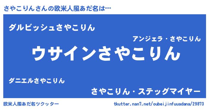 | 男性向けラノベタイトル風あだ名 | 『さやこりんの嫁は女の子じゃないと思った?』 |