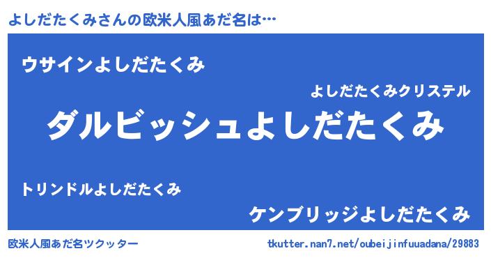 | ヒーロー風カッコイイあだ名 | 『ネオヨシダタクミ』『暗黒騎士ヨシ』 |