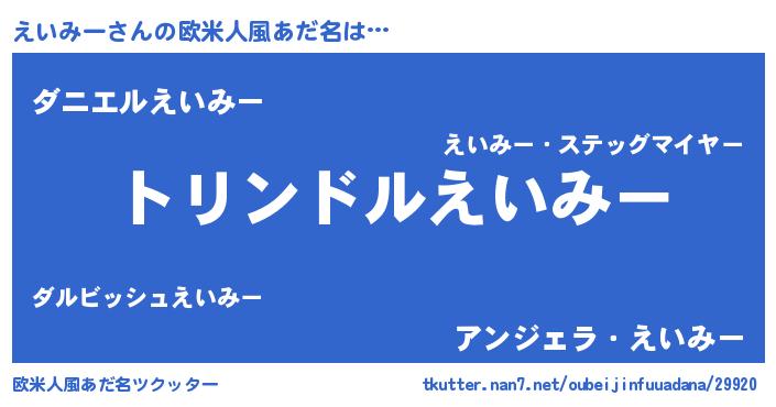 | 男性向けラノベタイトル風あだ名 | 『えいみー~年齢イコール彼女いない歴の魔法使い~』 |