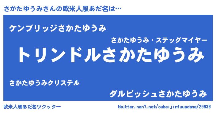 | ヘコむあだ名 | 『さかたゆうみ(震え声)』『なまこ酢』 |