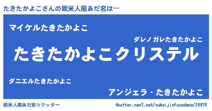 | ヘコむあだ名 | 『なまこ酢』『たきにゅー』『たきお』 |