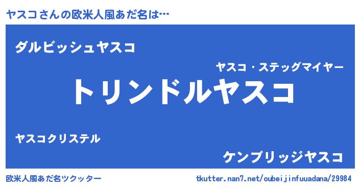 | 男性向けラノベタイトル風あだ名 | 『転生したらヤスコだった件』 |