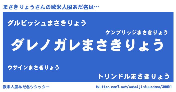 | 男性向けラノベタイトル風あだ名 | 『魔弾の王とまさきりょう』 |