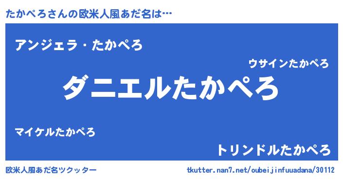 | 男性向けラノベタイトル風あだ名 | 『おまえをオタクにしてやるから、俺をたかぺろにしてくれ! 』 |