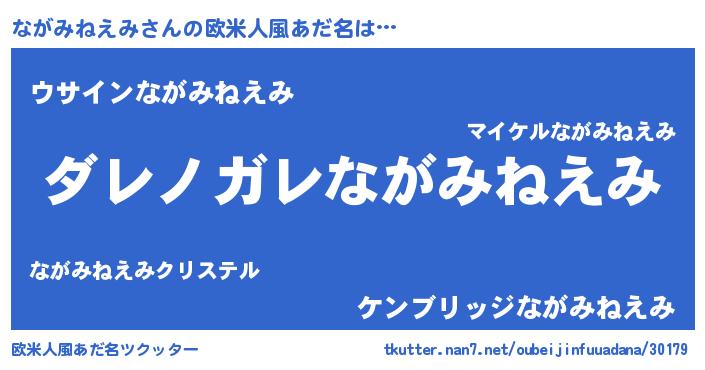 | 男性向けラノベタイトル風あだ名 | 『魔弾の王とながみねえみ』 |