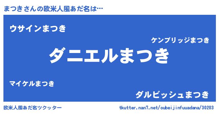 | 女子向けラノベタイトル風あだ名 | 『まつき恋絵巻』『まつき様がみてる』 |