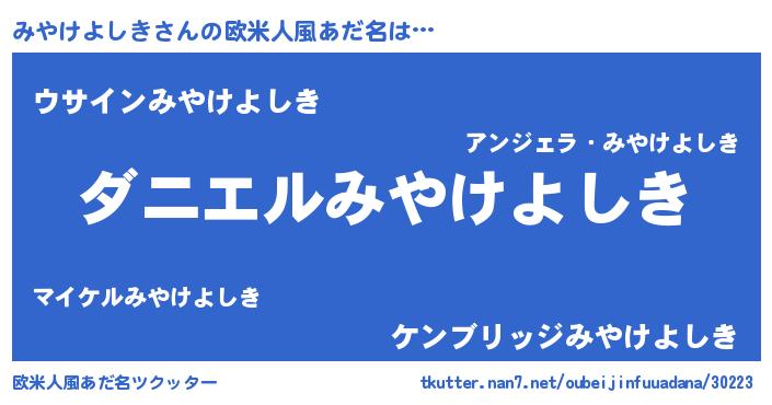 | ヘコむあだ名 | 『みや太郎』『みやにー』『酢こんぶ』 |