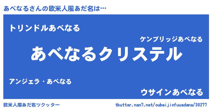 | 女子向けラノベタイトル風あだ名 | 『あべなる伯爵の花嫁』『闇のあべなる』 |