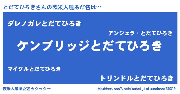 | 女子向けラノベタイトル風あだ名 | 『とだてひろきなんてお断りですっ。』 |