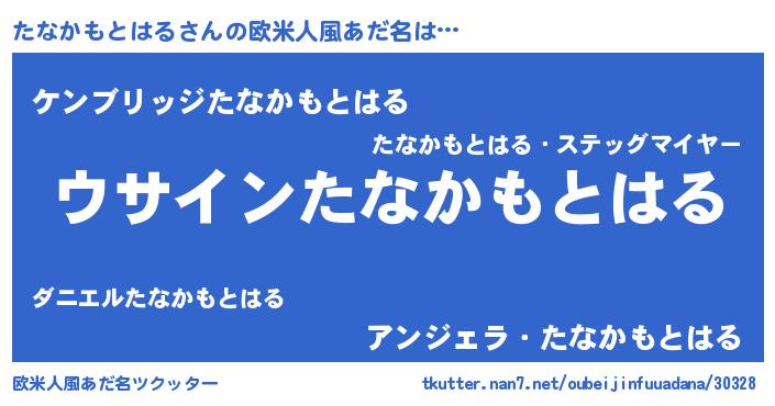 | 男性向けラノベタイトル風あだ名 | 『たなかもとはるの嫁は女の子じゃないと思った?』 |