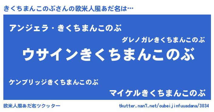 | 男性向けラノベタイトル風あだ名 | 『きくちまんこのぶの嫁は女の子じゃないと思った?』 |